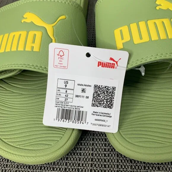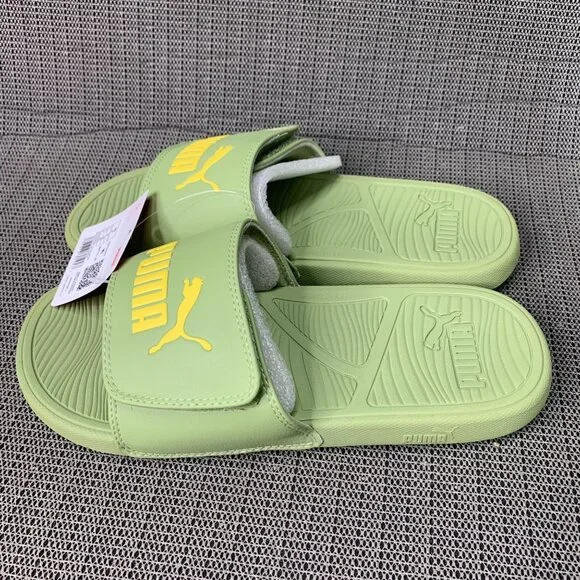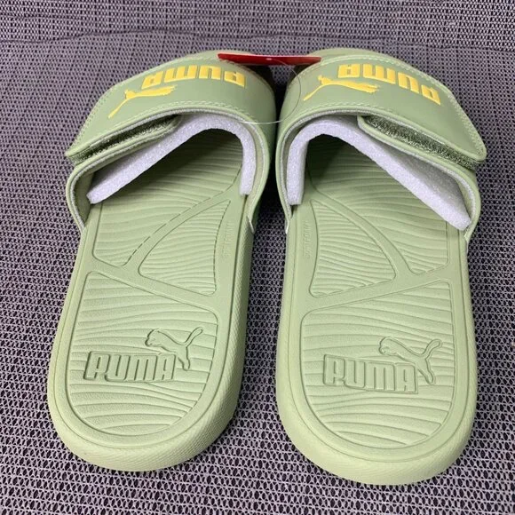 Puma Leadcat men’s Size 9 Calming Green & Yellow Slides Adjustable Sandals