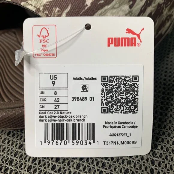 Puma Cool Cat 2.0 Nature Slides men’s Size 9 Brown Camouflage Print Sandals