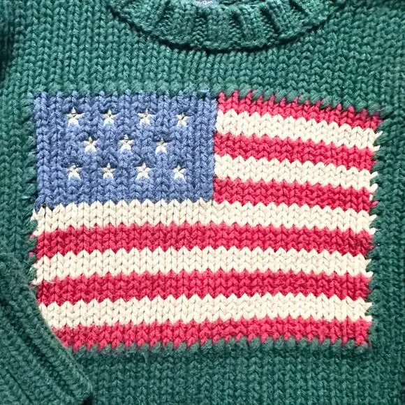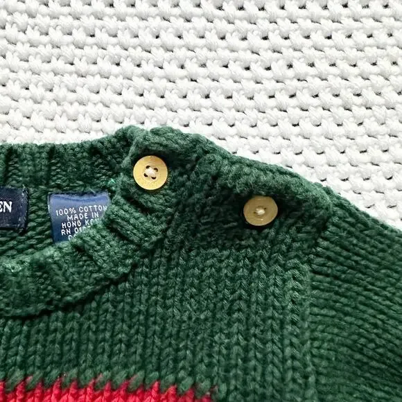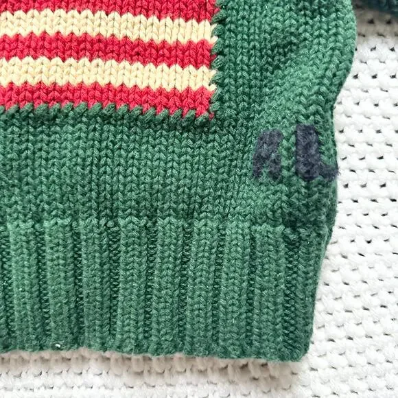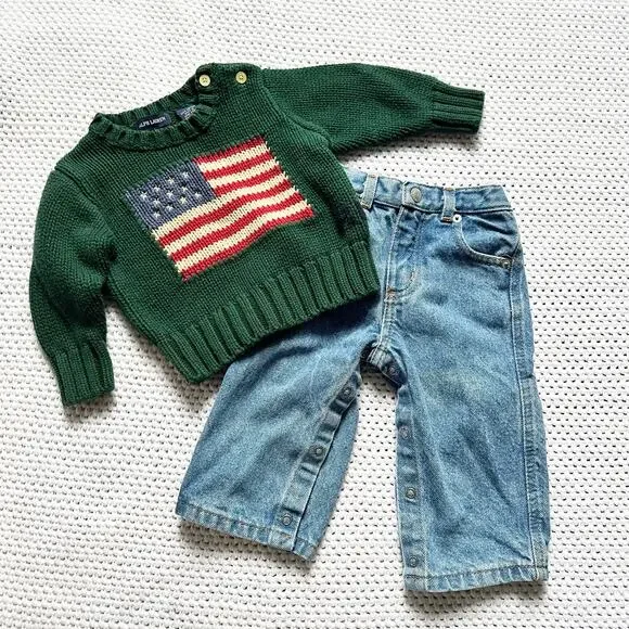 Polo Ralph Lauren Baby Green Flag Knit Sweater Denim Jeans Set 3-12 Months Vtg