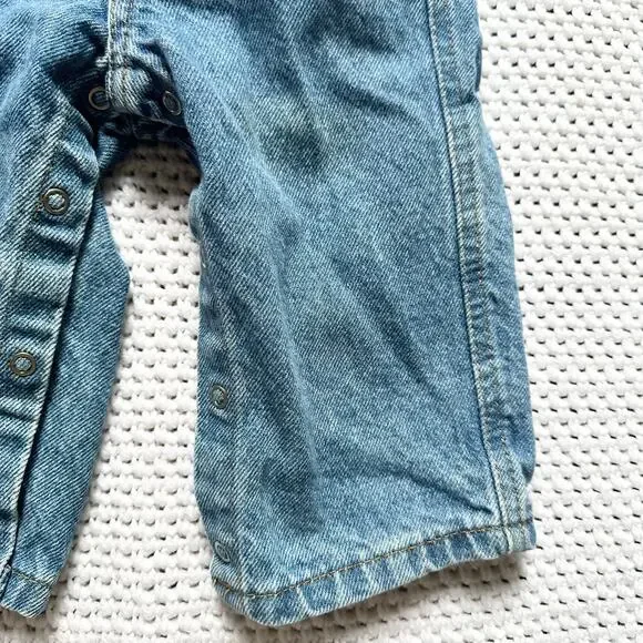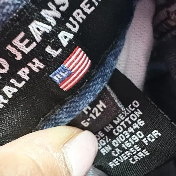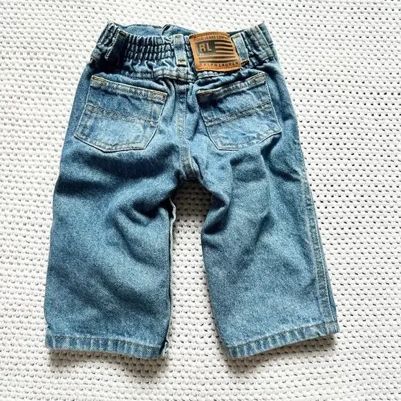From Polo Ralph Lauren. Baby infant sizing. Can fit between 3 months to 12 months. Outfit set includes blue denim straight leg jeans. Size medium 6/12 months. Stretch waist band...