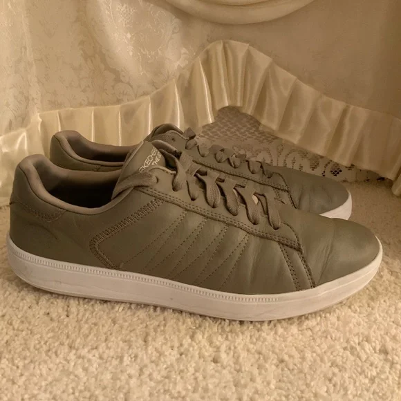 Used in good condition Leather uppers Size 10.5Color khaki Item #322 note: all used footwear are thoroughly cleaned and sanitized
