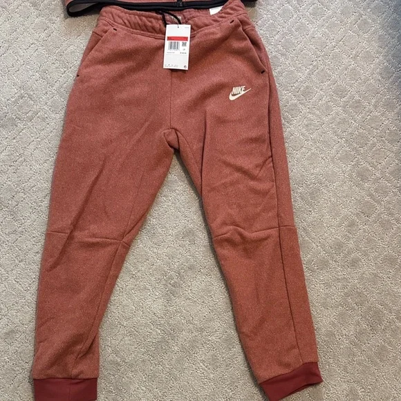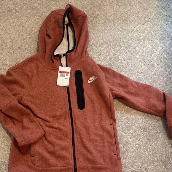 BNWT Nike Tech tracksuit set in mauve . Includes hoodie and pants with logo detail. Fleece material. Youth Large