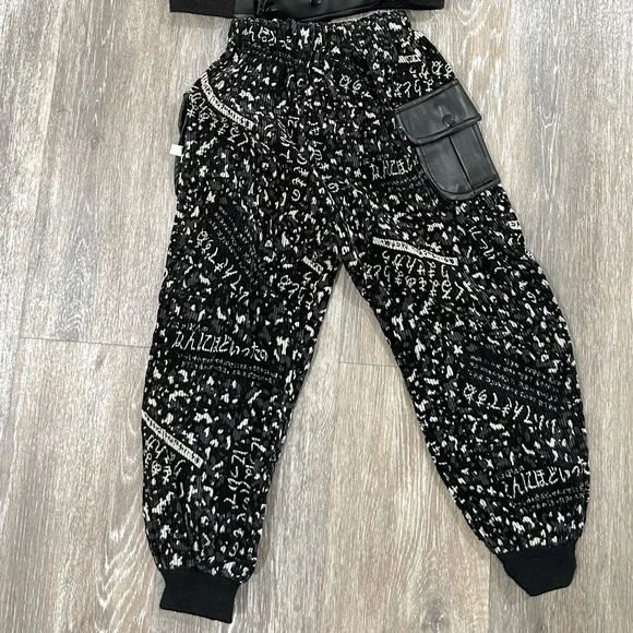 This kids´ outfit from Fashion MICHEL BACHOZ STJAMES JY HIGH SCHOOL Mike and Son is perfect for any occasion. The black corduroy fabric and animal print pattern make for a stylish and trendy outfit. The long-sleeved jacket and pants set includes two pieces, and is available in size M for unisex kids.Whether you´re dressing up for a party or keeping it casual for travel or activewear, this outfit is versatile and comfortable. The hipster and city theme adds a touch of edge to the outfit, while the vintage style makes it a timeless addition to any wardrobe. Get your hands on this unique and fashionable kids´ outfit today!