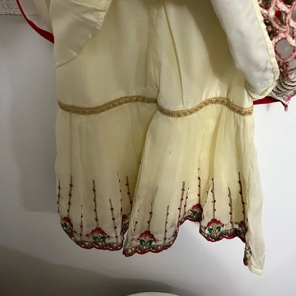 Size 2-4T gharara outfit, never worn with tags pale yellow/ivory with amazing work