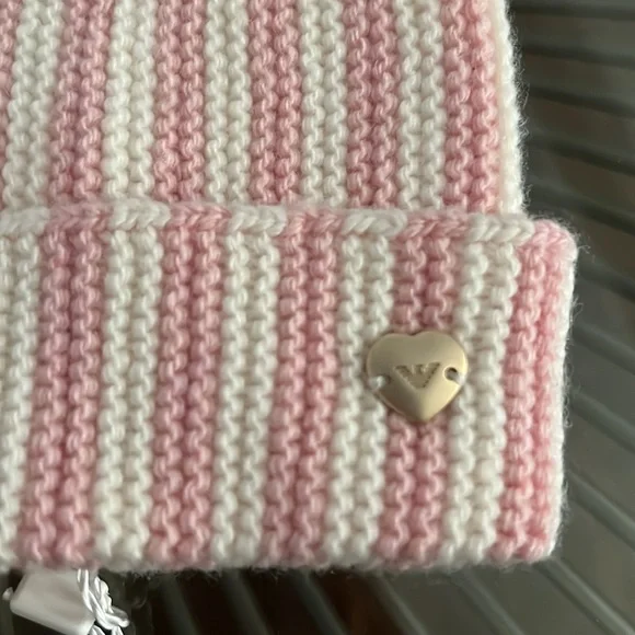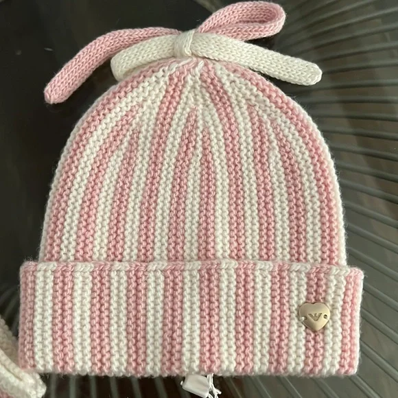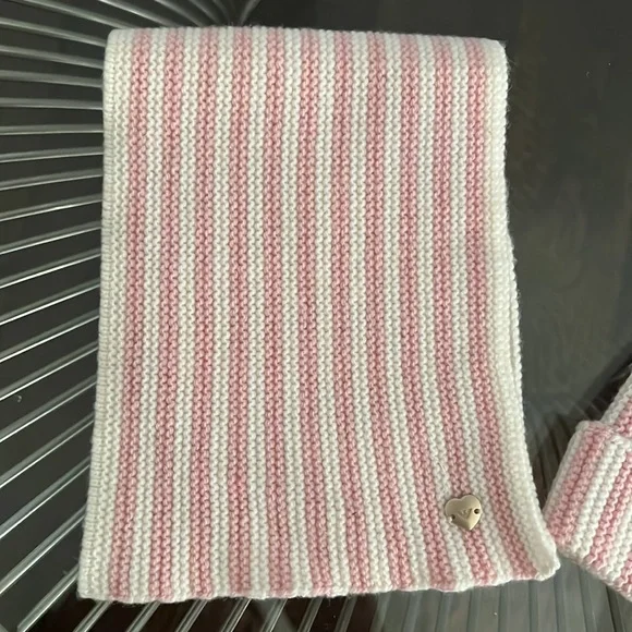 Armani baby scarf and hat set in off white and baby pink