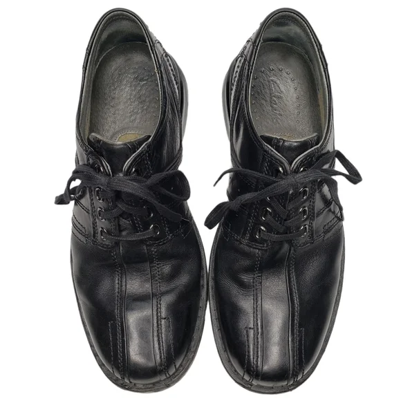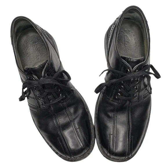 ClarksBlack Leather Round Toe Lace Up Business Casual Dress Shoes Men´s 8