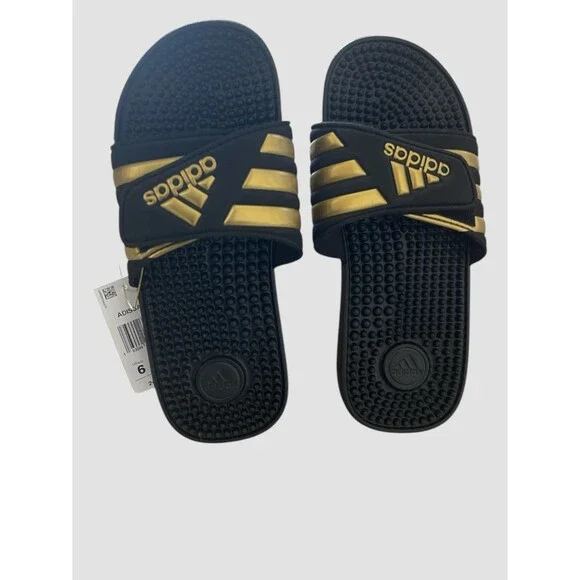 Adidas Adissage Size 6 US MEN / 7 US WMN Massage Slides Unisex Black/Gold New