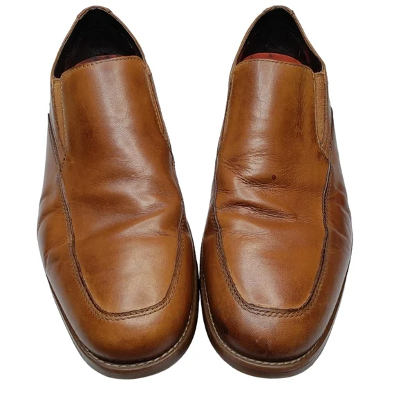 Excellent used condition! A couple of minor water spots. Cognac brown, genuine leather upper. Almond toe. Slip on design. Light weight, cushioned foot bed. All photos are mine and...