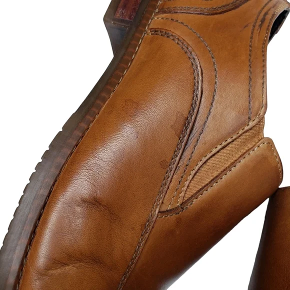 Excellent used condition! A couple of minor water spots. Cognac brown, genuine leather upper. Almond toe. Slip on design. Light weight, cushioned foot bed. All photos are mine and are of the actual item. See photos for more details.Approximate heel height:Open to reasonable offers!