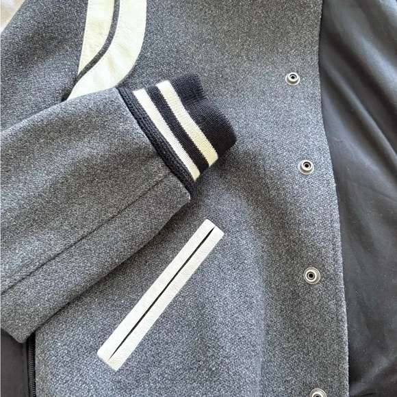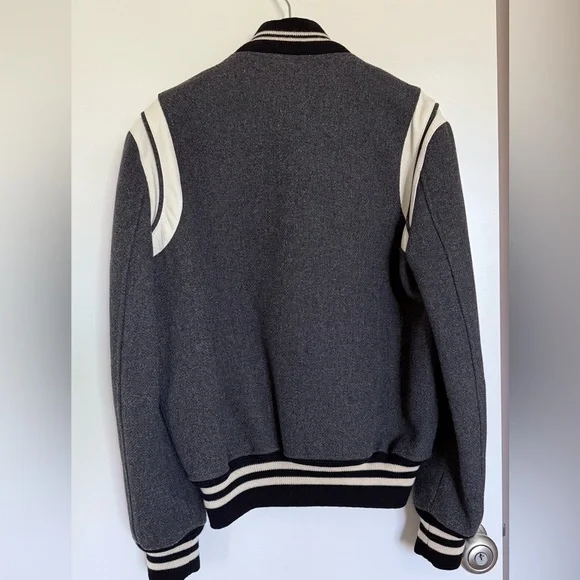 Saint Laurent Teddy Bomber Jacket - Grey - Size 46 (Small)