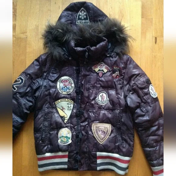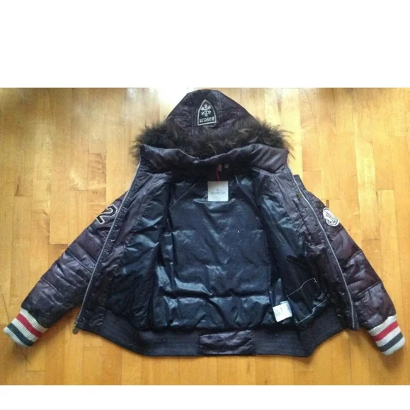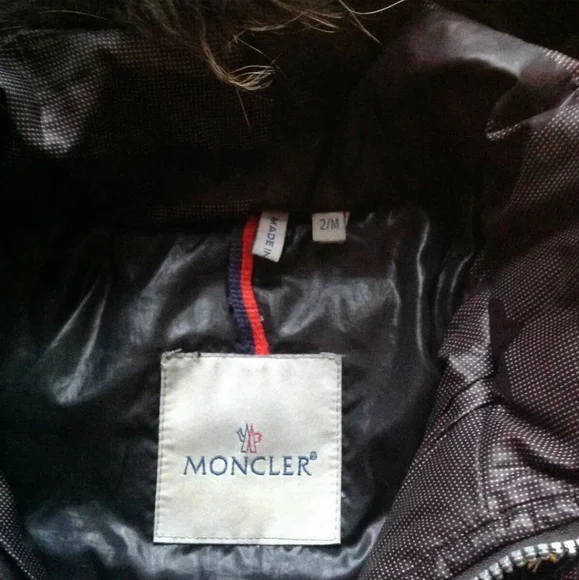 “pre owned in good condition , has minor blemishes from regular pre owned use”FeaturesFur, Elastic Waist, Full ZipInsulation MaterialDownDepartmentMenPatternAthleticLining MaterialPolyesterSeasonFall, WinterOccasionCasual, Party/Cocktail, TravelVintageYesSize2/ MediumCountry/Region of ManufactureUnited StatesModelCoatProduct LineMonclerAccentsLogoSize TypeRegularCharacterVarsityPerformance/ActivityWalkingFabric TypePolyesterBrandMonclerOuter Shell MaterialPolyamideStylePuffer JacketColorBrownClosureZipThemeVarsityTypeCoat