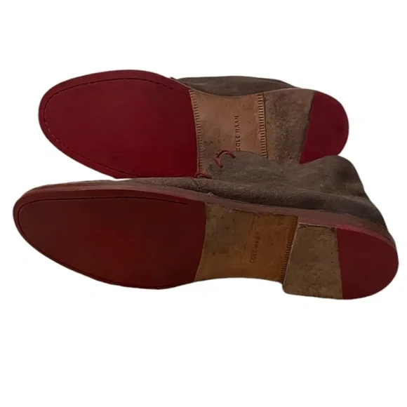 Cole Haan Dark Brown Suede Chukka Lace up Ankle BootsLace up closure. Leather and rubber outsoleCondition is Good Preowned with Signs of NormalWearComes from Smoke & Pet Free...
