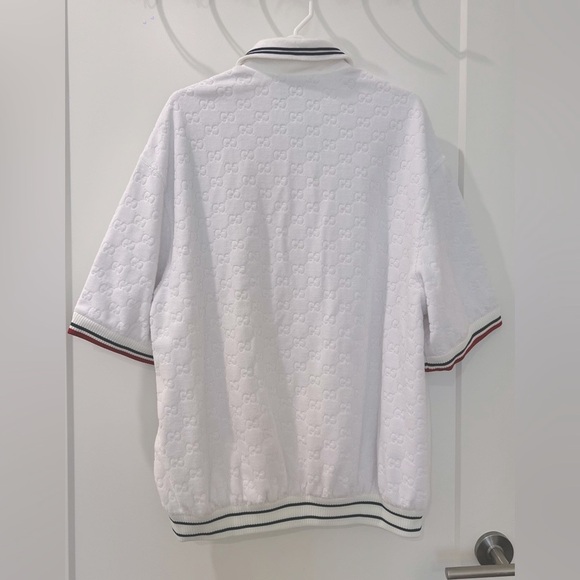 Experience luxury with this casual zipped polo jacket, featuring a crisp white base complemented by the iconic green and red stripe detail. Crafted from high-quality materials, this shirt offers a minimalist yet sophisticated look, perfect for any casual occasion.
