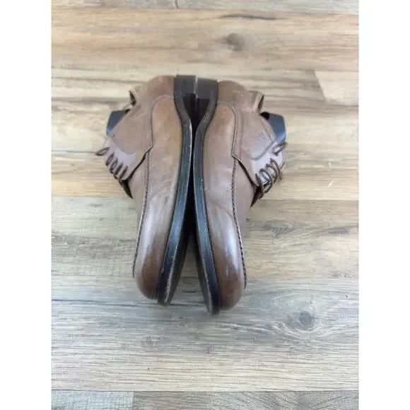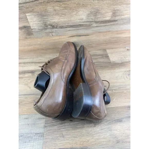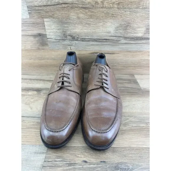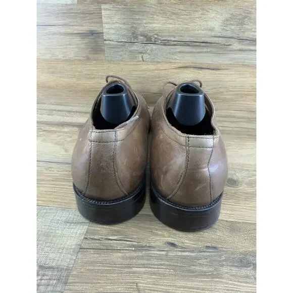 The product is a pair of Massimo Matteo Italian cap toe leather dress shoes in size 9 US/8 UK for men. These brown Oxford style shoes feature a lace-up closure and are made of...