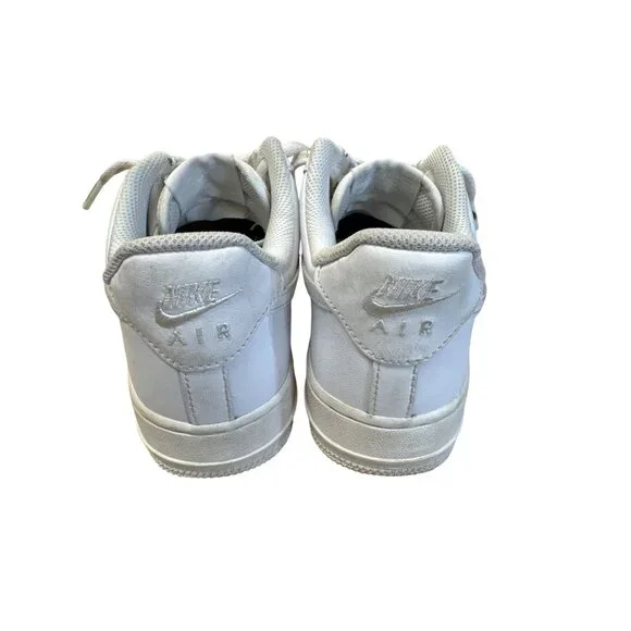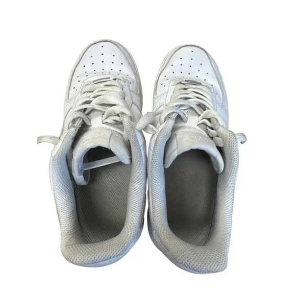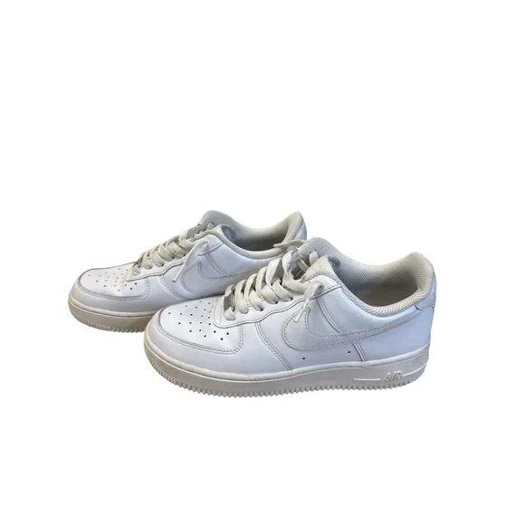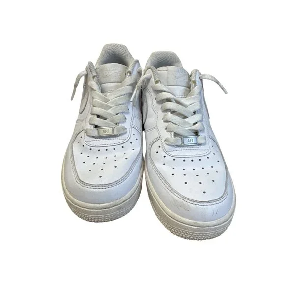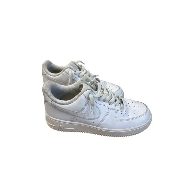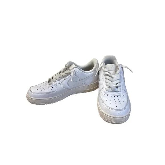 These Nike Air Force 1 sneakers provide timeless style with a classic white design. Crafted for comfort and durability, these low-top shoes are ideal for everyday wear. Theyre in good condition with normal wear and can be shipped today. SKU 7804• Low-top design• Lace-up closure• Perforated toe box• Rubber outsole• Cushioned footbedLight scuff marks present on toe area, otherwise in good condition.Features:• casual athletic wearSize: Mens 8Condition: Pre-Owned GoodNo defects notedThis item has been cleaned, sanitized and deodorized. Although we clean our items additional cleaning may be needed such as spot treatments, etc.