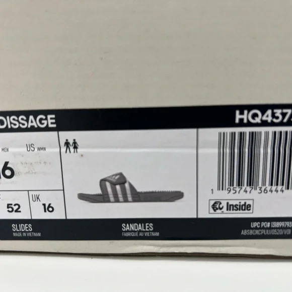 The product is a pair of adidas Unisex-Adult Adissage slides sandals in size 16, featuring a gray color. The sandals have a synthetic upper material and a slide style design. They...