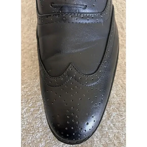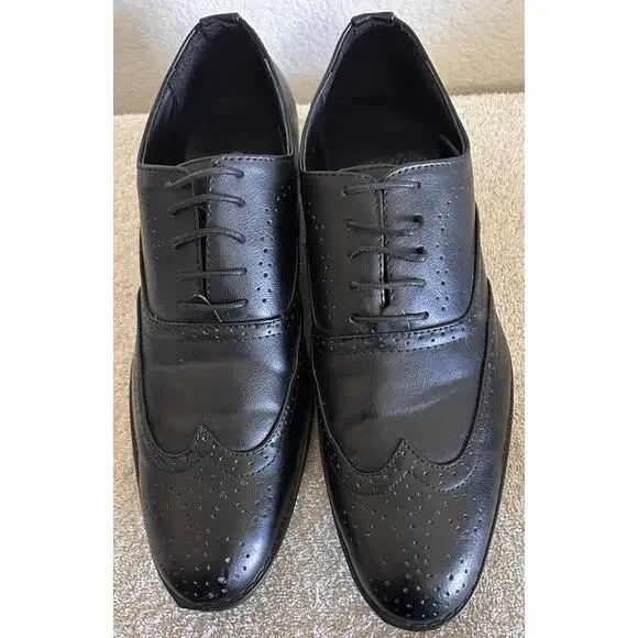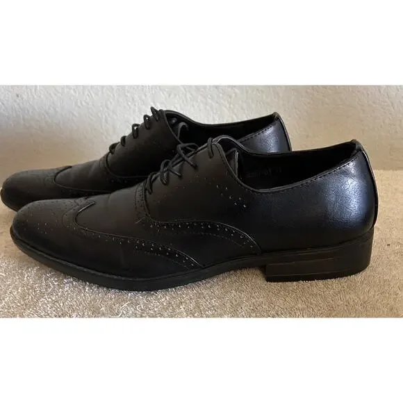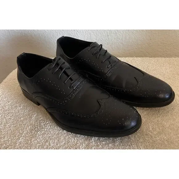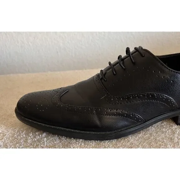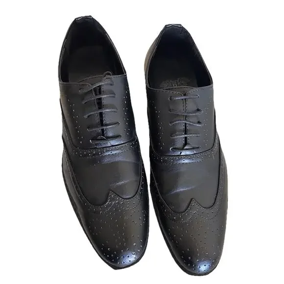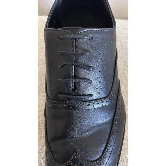 Royal Shoes Fancy Men´s Size 11 Dress Oxford Toe Lace Up Henry-01 Black Leather