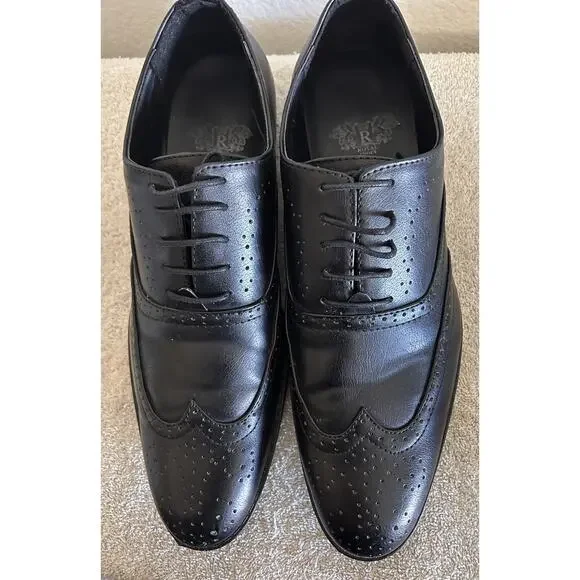 The Royal Shoes Fancy Men´s Size 11 Dress Oxford Toe Lace Up in black leather is a stylish and sophisticated choice for the modern gentleman. With an almond toe shape and lace-up closure, these shoes exude a classic and timeless appeal. The brand, Royal, adds a touch of luxury and the royal theme ties in perfectly with the elegance of the dress style. Perfect for summer, fall, and spring, these shoes are a versatile addition to any formal wardrobe.SBA-7