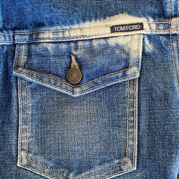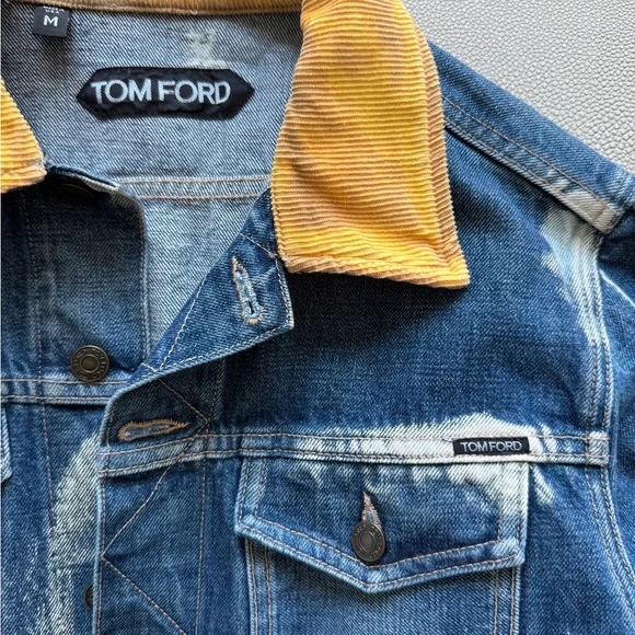 TOM FORD Custom Bleached Denim Jacket with Corduroy Collar