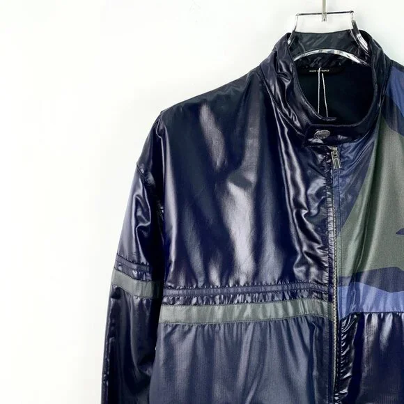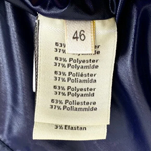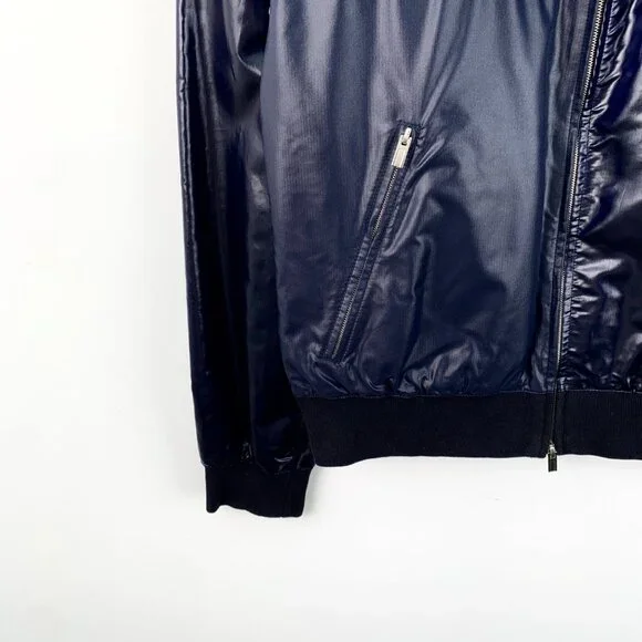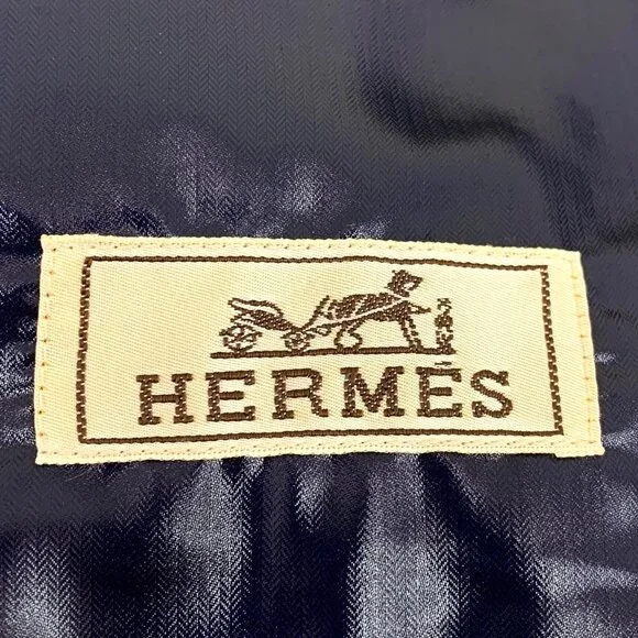 Hermès Navy Stand-Collar Zip-Up Long Sleeve Jacket (DM0497) - Size S (46) - 99% NewThis stylish deep navy jacket from Hermès features a sleek stand-collar design with a zip-up closure, offering a refined and sophisticated look. The long sleeves provide a comfortable fit, while the high-quality fabric ensures both comfort and durability. In 99% new condition with no visible signs of wear, this jacket remains in excellent shape and is a versatile, high-end addition to any wardrobe.