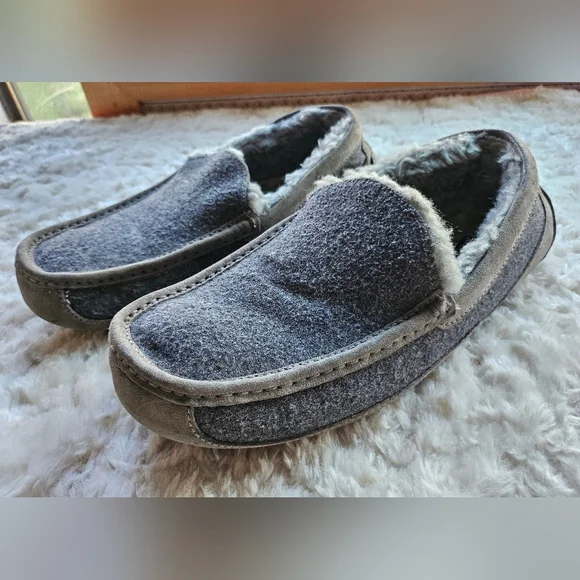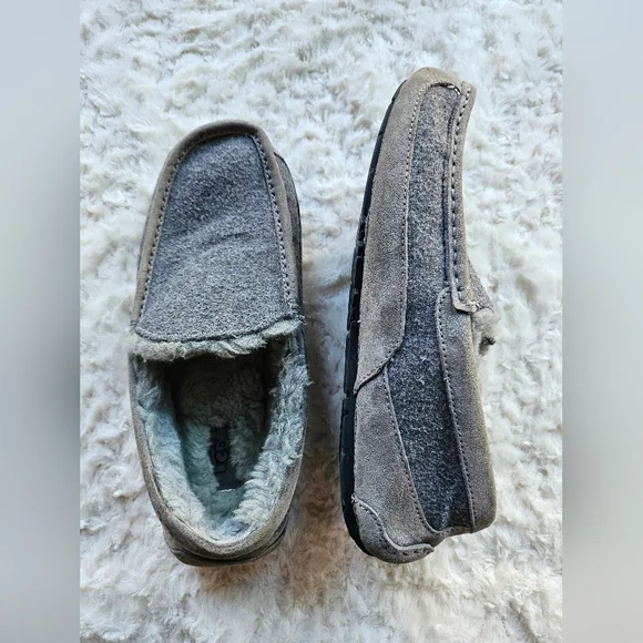 Ugg Men´s Ascot Lined Slippers, Wool, Suede, Charcoal Grey, Size 9