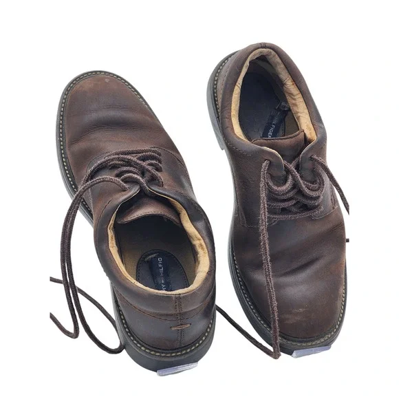 Shoes Mens Size 9.5M Leather Upper Oxford Brown Casual DressBullet Points:Brand: Tommy HilfigerSize: 9.5M Men’sMaterial: Leather upper with man-made elementsColor: BrownStyle: OxfordCONDITION:Pre-owned. Fair condition with some wear/scuffs and markings. visible wear, including scuffs on the leather and creasing on the upper. Review photos for details.PACKED WITH CARE:Ensuring safe transportation with careful packing.SHIPPING:Swift shipping! Same or next business day.CONTACT:Reach out with questions. We´ll reply ASAP, even during TV binge-watching.ABOUT US:A family-owned and couple-run small business. She was born in a vibrant African village, while he hails from the USA. Together, they curate a collection of treasures from around the world.Discover vintage curiosities, statement pieces for your home, rare gems, and the delightfully odd. Lose yourself in untold stories of rare books or nostalgic collectibles. Fashion, Home Decor, Rare books, African Art, Christmas, Nutcrackers, Sculptures, Collectibles, and more.