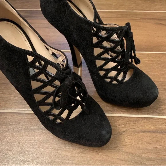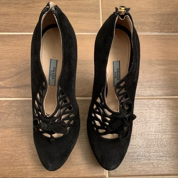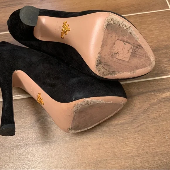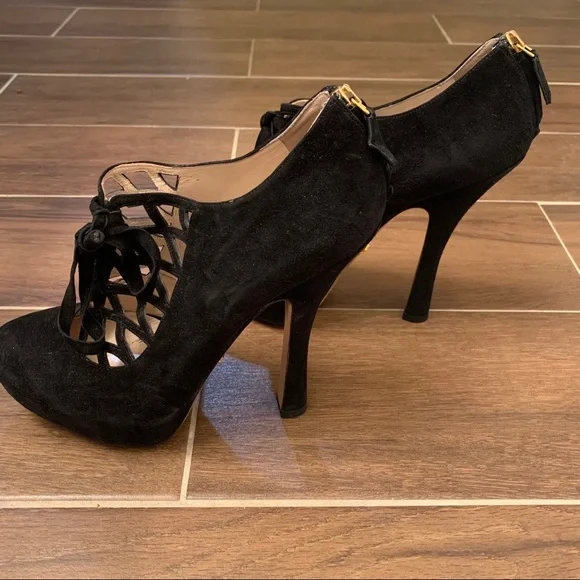 Prada Camoscio Black Suede Booties Size 38.5In good condition. Any wear pictured.