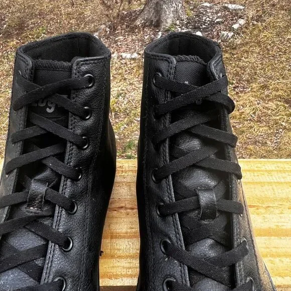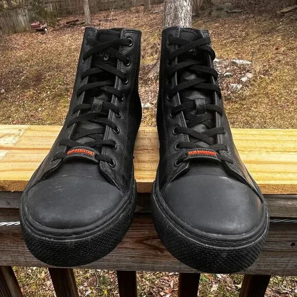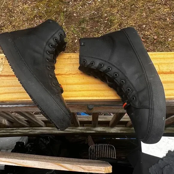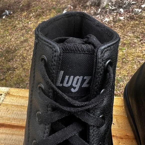The product is a pair of Lugz Stagger Hi Sneakers for men in black, size 10.5. These athletic shoes feature slip-resistant soles, making them ideal for various activities. The upper material is synthetic, offering durability and style.(#7)