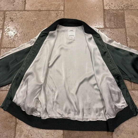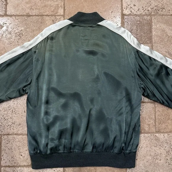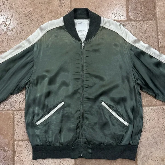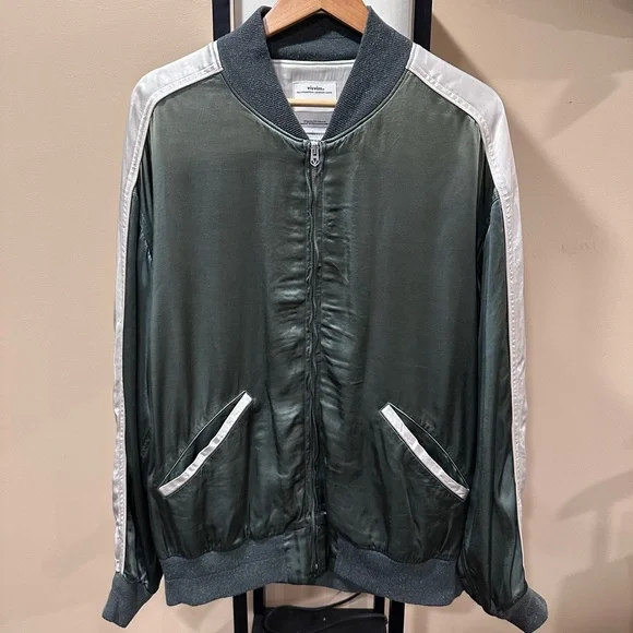 Visvim Douglas Jkt SS21 Satin Green Zip Bomber Souvenir JacketSize 4Good condition (see detailed photos)Retailed at $1930Visvim Spring Summer 2021Measurements:Chest: 24”Length:...
