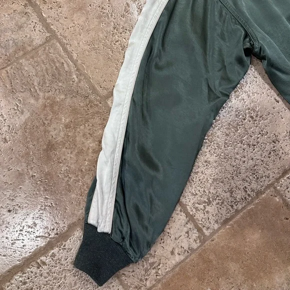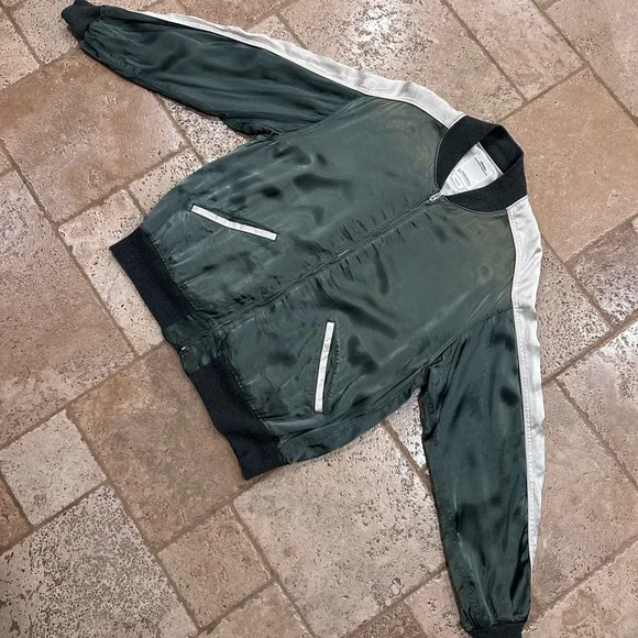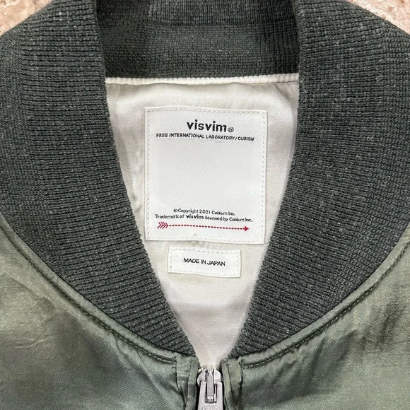Visvim Douglas Jkt SS21 Satin Green Zip Bomber Souvenir JacketSize 4Good condition (see detailed photos)Retailed at $1930Visvim Spring Summer 2021Measurements:Chest: 24”Length: 29”Shoulders: 22.75”Sleeve length: 25.25”