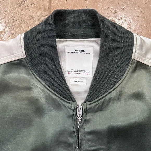 Visvim Douglas Jkt SS21 Satin Green Zip Bomber Souvenir Jacket