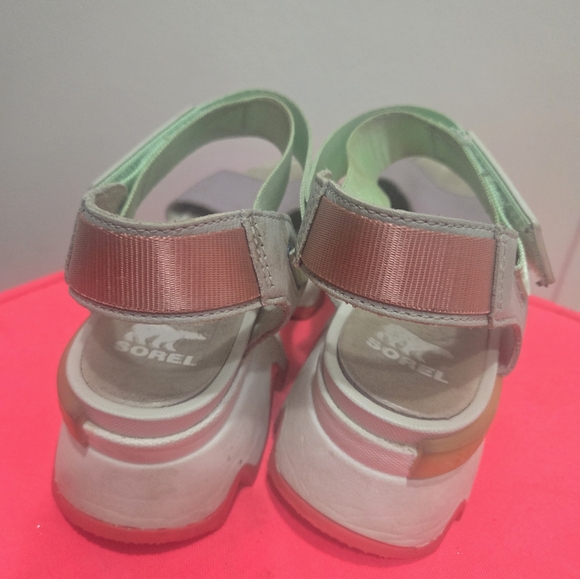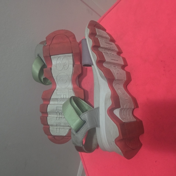Gray and Green Platform Sandals with Velcro Straps SOREL