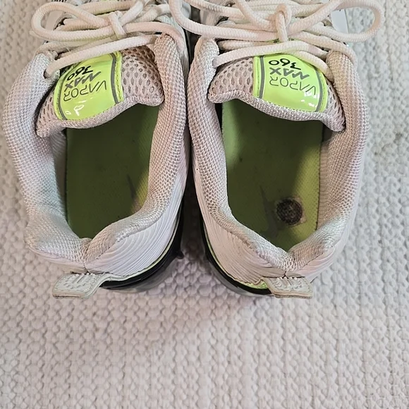 Nike Mens Air VaporMax 360 CK2718-100 White Neon Green Sneaker Shoes Size 6.Good used condition.Please make sure to read the full description and review all pictures before purchasing.Thank you for Poshing with Gilded Rabbit!
