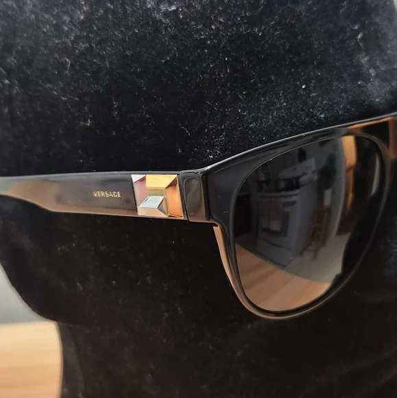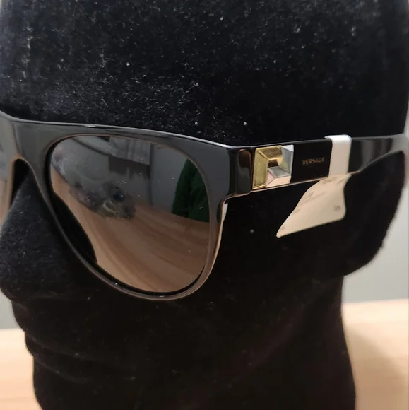 Versace VE4346Frame Color: GB1/87 BlackLens Color: dark greyPolarized Lens: NoLens Material: plasticPrescription Capable: NoFrame Shape: PilotFrame Material: PlasticFrame Type:...