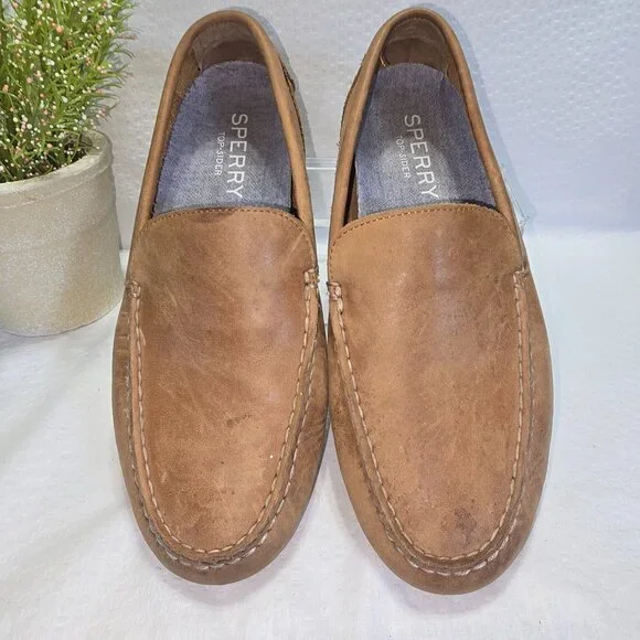 SPERRY MENS PILOT LOAFER DRIVER TAN LEATHER SHOES SIZE 8 GREAT CONDITION