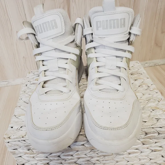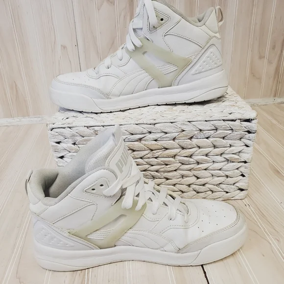 Puma Shoes Mens 8.5 Blackout High Top SneakersWhite Leather Lace Up EUC