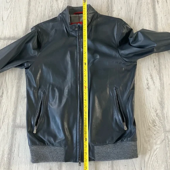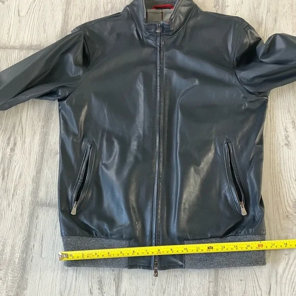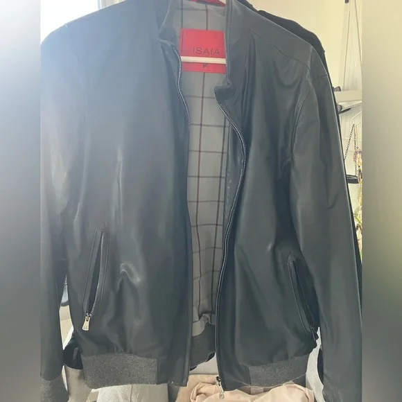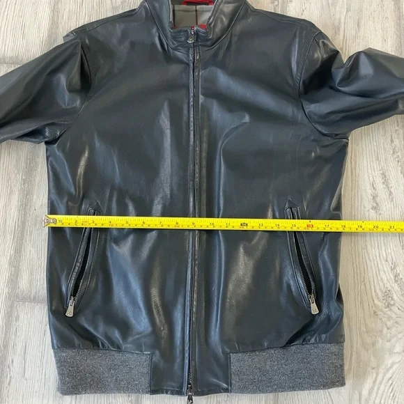 ISAIA leather jacket - SMALL - gray leather -