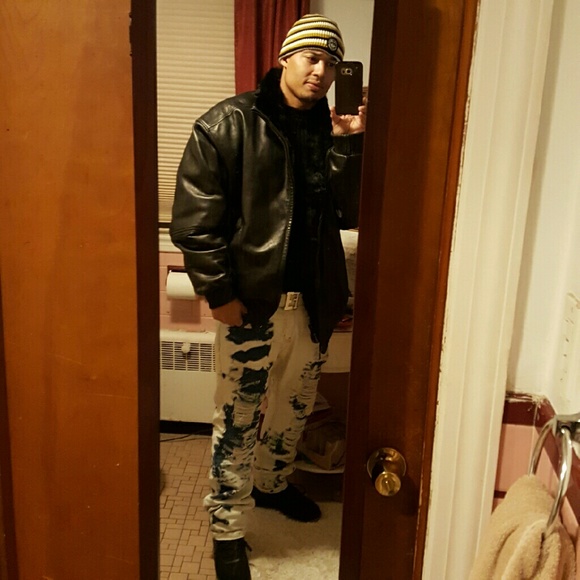 Butter Soft Lamb skin on one side and clean soft warm Havana Black Rabbit when reversed (plucked over 10xs by the Furrier Company, removing all loose fur on animal pelts) pockets on both sides... Reversible.Basically Brand New.. you Can´t find this Style & Quality anymore...I paid $1500 in Boston back in 2018 this is beyond RARE...you make a Statement when you step in any space, Dripping in this!!! I Only wore like 4 times..So there´s no scuffs or rips or tears on either side.. this is a 10/10..