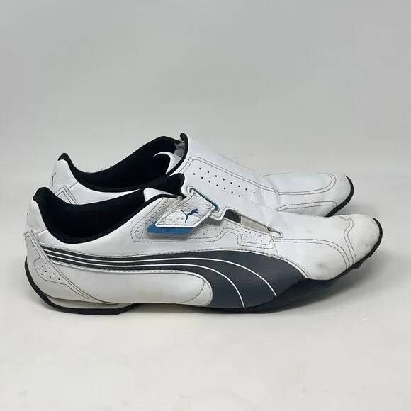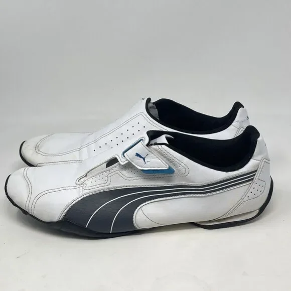 Puma Redon Move Shoes Mens 11.5 White Blue Black Leather Strap Driving Trainers