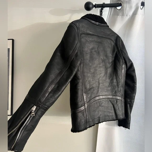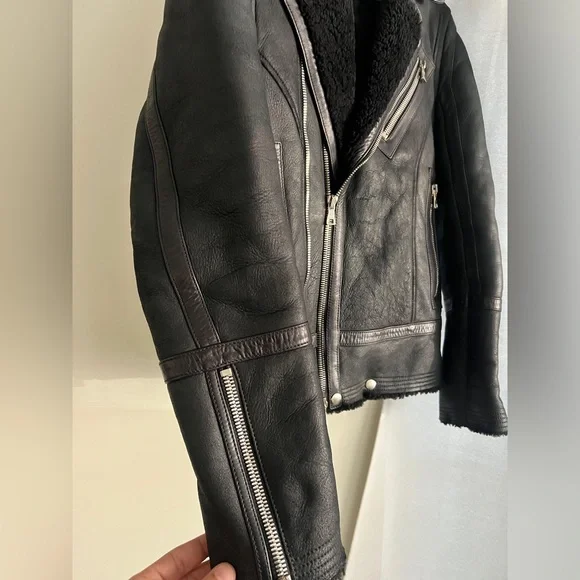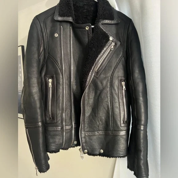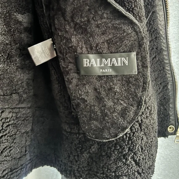 • Balmain shearling jacket size 48• Very heavy, lots of zippers, leather sleeves• Excellent condition