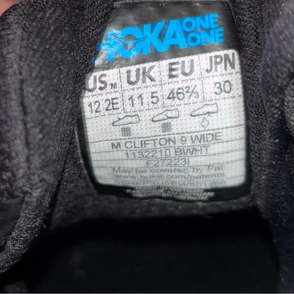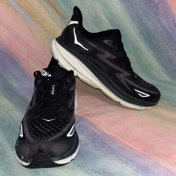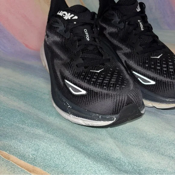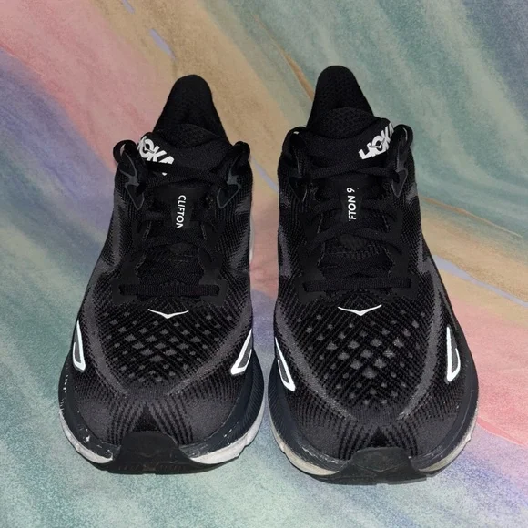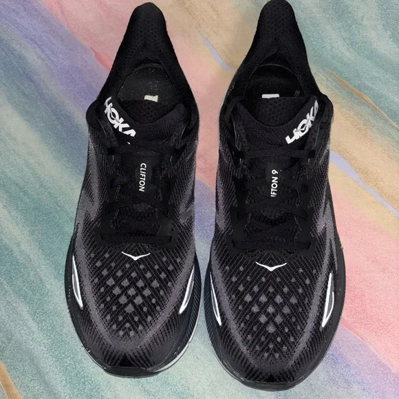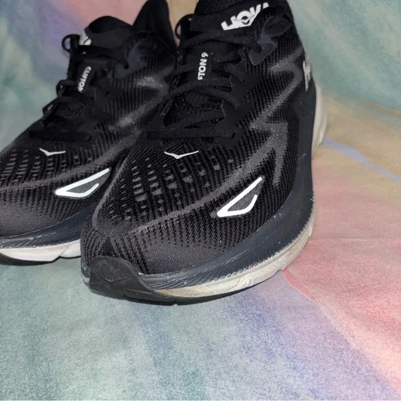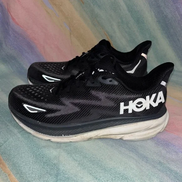 Hoka One One CLIFTON 9 Black White Running Sneakers Men´s Size 12 2E