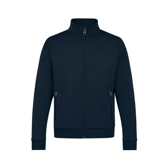Louis Vutton Monogram Zip-Through Top.Current CollectionRetail: $1795 #Authentic #LV #louis #enviornmentlyfriendly #organic Navy blue zip up jacket. environment-friendly piece injects iconic Louis Vuitton signatures into a classic casual shape. Crafted from fully recycled yarn and adorned with a discrete textured Monogram effect, it features a full-length zip at the front and two zipped front pockets. On the right side, an engraved Louis Vuitton staple adds to the signature vibe.