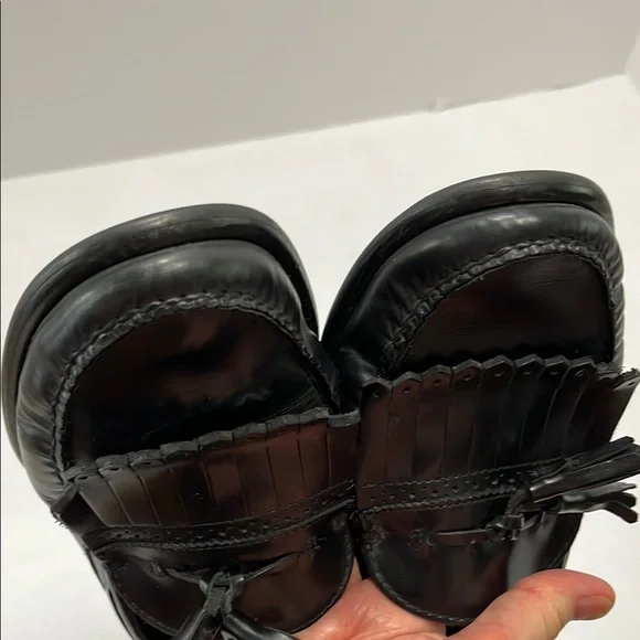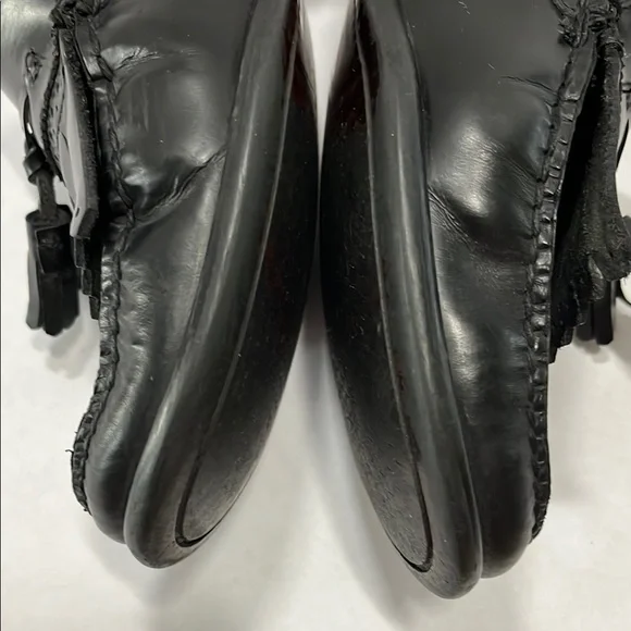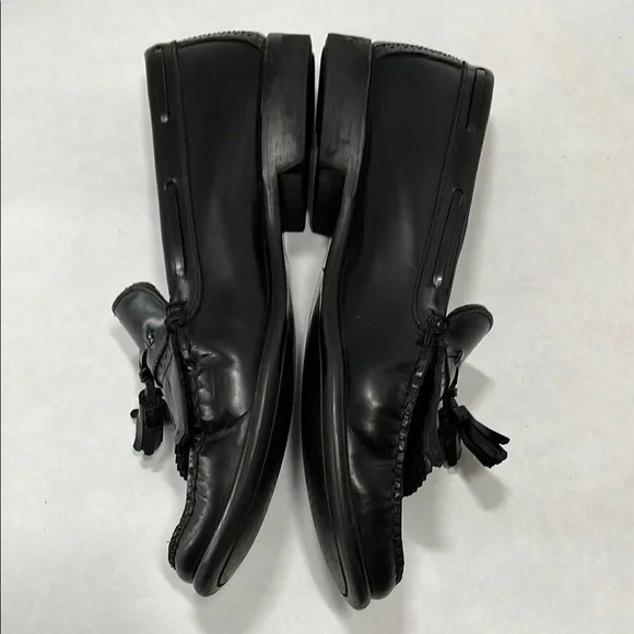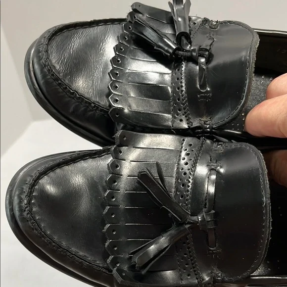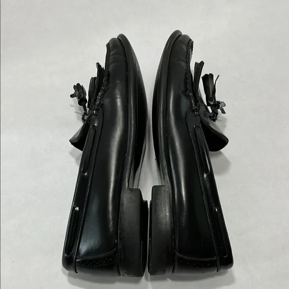 G.H. Bass & Company classic black leather loafers. Sleek design with tassel detail. Perfect for formal or casual wear. Well made, condition is very good pre-worn. Has scuffs and scratches, but shoe polish will make scuffs disappear. No defects. The original Bass heels are in excellent condition, due to shoemaker added “heel savers” when the shoes were new, which are invaluable for extending the life of any shoe. Men’s size 10 D width.No smoking home. I ship same or next business day. Noaccount? Use referral code PEP4223 @sign up for $10 free off your first purchase.