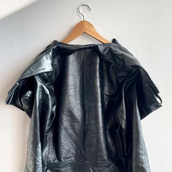 SANCHEZ KANE Leather Jacket [Size M]Condition: Like New, no flawsEmerging designer, rare item!!Printed black leather jacket with adjustable fit featuring an underlayer "vest" that...