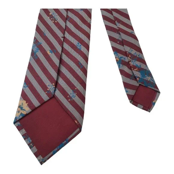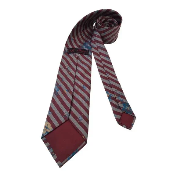 BRIONI Burgundy Striped With Flower Print Tie Silk Italy 57"/ 3".1/4 EX COND