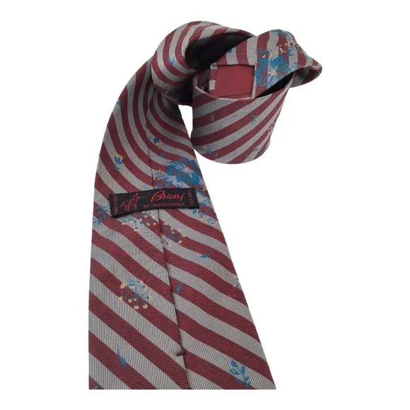 BRIONIMade In ItalyColor: Burgundy Striped With Flower Print TieMeasurement: 57"/3".1/4Material: 100% SilkPre-Owned in Excellent ConditionHello & Welcome to My StoreAll my listed items are guaranteed 100% genuine and authentic so please bid with confidence!My items come from a smoke-free & pet-free homeThe description of my items are accurate and precise.Please note that due to various factors (lighting, monitors, etc.), the color appearance/shade you see in photos may sometimes vary.If you have any questionss, please contact me. I will respond promptly. Your satisfaction is guaranteed and my flawless positive feedback attest to that.Please visit my store, check back often as I offer a large choice of items for men and women posted daily.