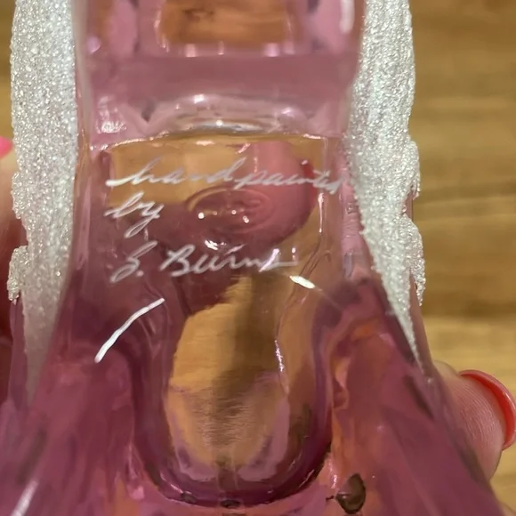 Fenton Iridescent Pink Slipper with Hand Painted SwansLarger size 7” longSigned by S. BurnsNo breaks or chips. Comes in its original box. (13422428)