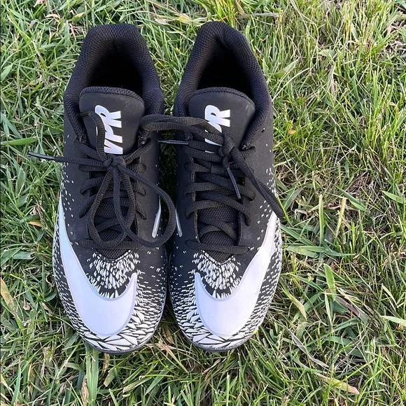 Nike cleats shoes Black and White footballCleats men’s 7.5 Nikevapor vpr fast flexSports football cleats athlete game practice Stylish black and white football cleats with a sleek design. Perfect for the field.Used gently used