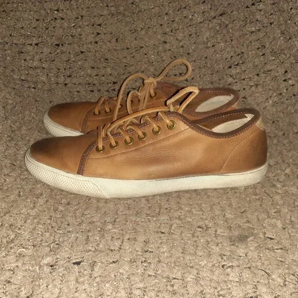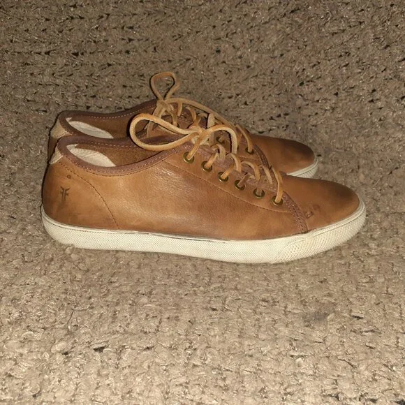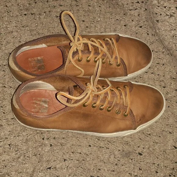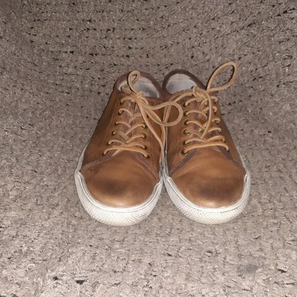 FRYE-Chambers Low-Brown Leather Oxford Shoes Sneakers 81520-SZ 9.5-Pre-OwnedIn pre-owned condition as shown...Size 9.5, measures 11.25" via sole, and 4.25" wide.The FRYE Chambers Low Brown Leather Oxford Shoes Sneakers are a versatile choice for casual and travel occasions. These round toe sneakers feature a lace-up closure and a solid pattern, making them easy to style with different outfits. Crafted from leather with a rubber outsole and leather insole, these shoes offer comfort and durability. With a standard shoe width and size 9.5, they are suitable for men looking for a stylish and functional footwear option for the summer, fall, and spring seasons.