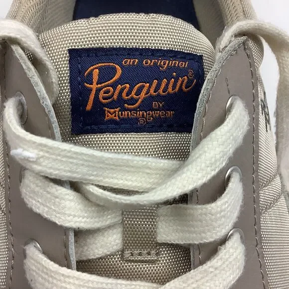 Penguin by Munsingwear Mission Sneaker Shoes Men´s 11.5 Tan Beige Lace Up Low TopThere are visible stains and also the fabric on the foot bed soles is loose in both shoes (see pic)In good condition otherwise.Please see pictures to appreciate the style and for measurements.If any questions, let me know.I ship Monday - Friday (excluding holidays).Thank you for checking!!